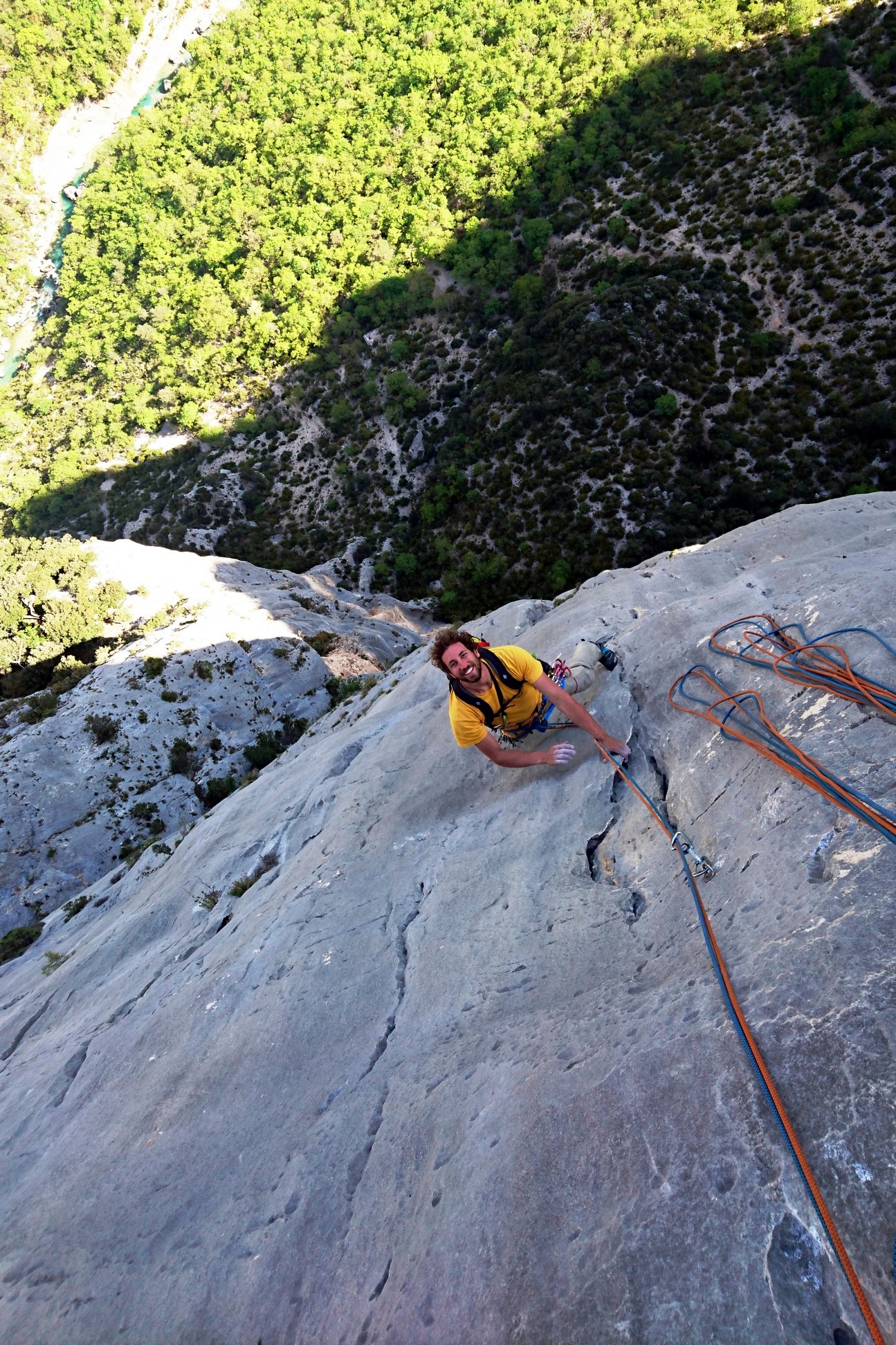 Eine Kuriosität im Verdon ist der Zustieg: Nicht dass er lang wäre, nein, man fährt direkt mit dem Auto zu. Allerdings nicht zum Einstieg, sondern zum Ausstieg der Routen. Die Staße führt oben an der Canyon-Kante entlang und bei fast allen Routen wird zuerst einmal abgeseilt – ein gewöhngsbedürftiger Start in den Tag. Vielleicht kam das Gebiet auch deswegen außer Mode. Die tendenziell weiteren Hakenabständen und der für moderne Sportkletterer eher technische und weniger kraftvolle Kletterstil haben wohl auch dazu beigetragen dass nur noch wenige dem Verdon fröhnen. Denn sie wissen nicht was sie verpassen!